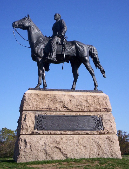 The statue of George Gordon Meade atop Old Baldy at Gettysburg.