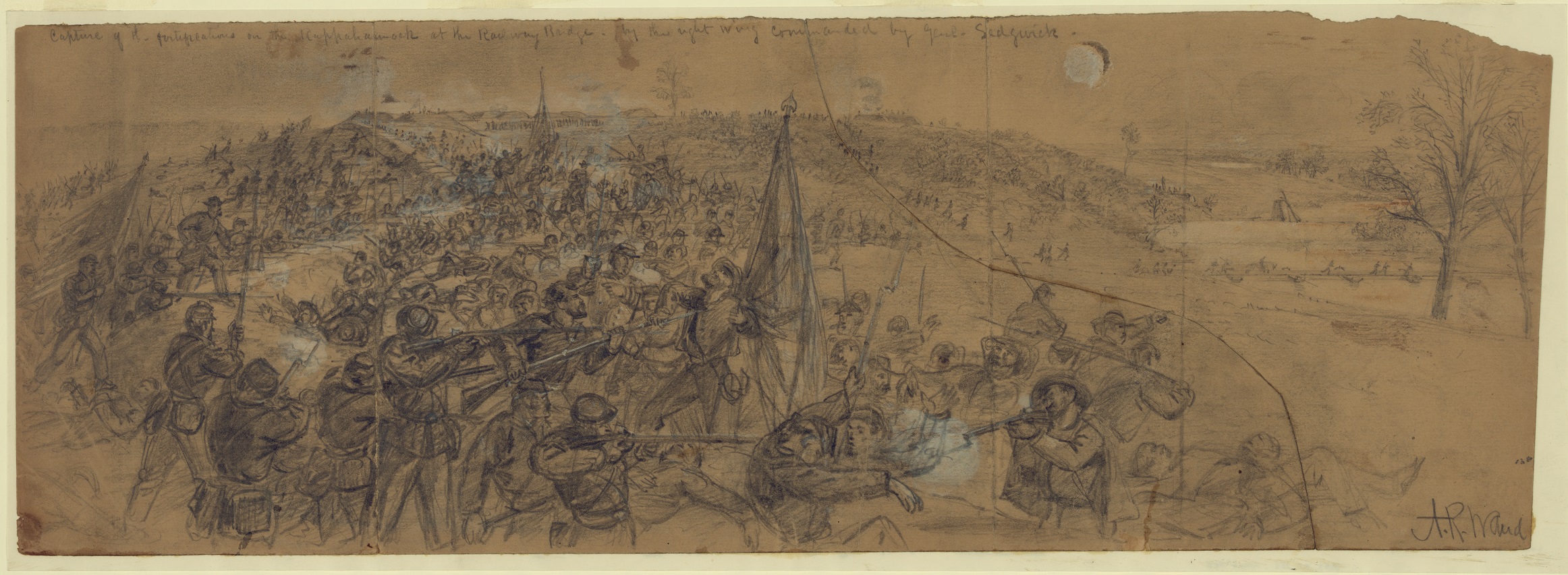 Pvt. Wilbur Fisk of the 2nd Vermont, at the other end of the Union line with Sedgwick’s VI Corps, studied the Confederate defenses with great interest because there seemed a pretty fair chance that he would soon be testing them personally. “There was a deep creek between us and the enemy, and the rebels had been busy digging rifle-pits and strengthening their position ever since we came up to them,” he wrote. “Both banks were abrupt and steep and difficult to get over, while on the rebel side they had added to these disadvantages by placing every conceivable obstacle in the way of our advance. Trees were felled, abattis made, breastworks were thrown up until they occupied a position that if we had occupied we should have considered impregnable against all the rebels in the universe.”