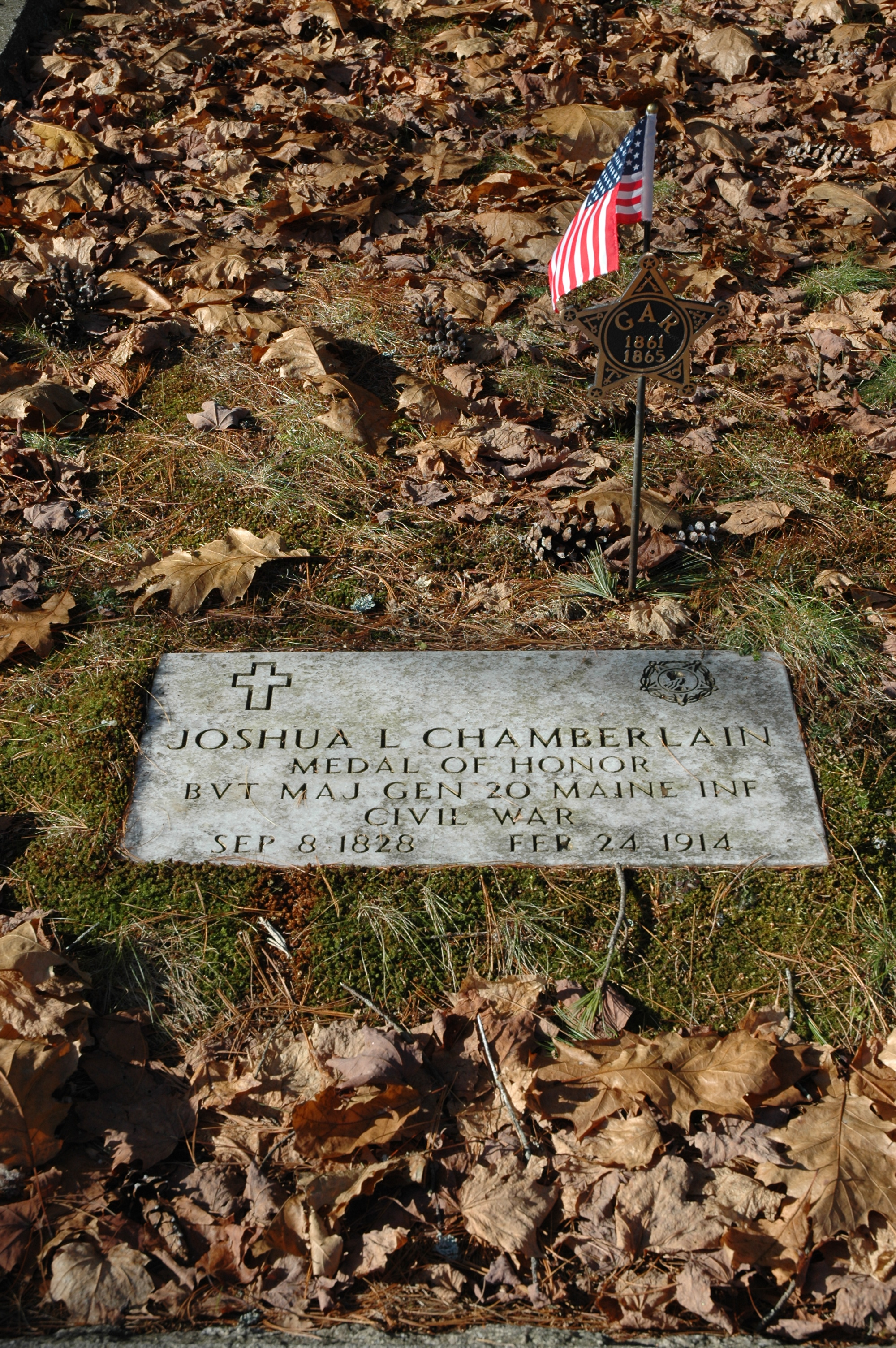 Well, recently I did go back to my old school, a place called Bowdoin College in Brunswick, Maine. I’ve been working on a magazine article that involves Joshua Lawrence Chamberlain, and I figured it was time I paid my respects to the old soldier. As most Civil War aficionados know, Chamberlain was a Bowdoin graduate who was teaching at the college when the Civil War began. He joined the army, received an appointment as the lieutenant colonel of the 20th Maine Volunteer Infantry, and was serving as the regiment’s commander at the Battle of Gettysburg. Historians argue about the overall importance of the 20th Maine’s defense of Little Round Top on July 2, but I don’t think anyone can deny it was a heroic and courageous stand. He was later badly wounded during the initial attacks on Petersburg, but returned to the army and presided over the official surrender of the Army of Northern Virginia at Appomattox. (I’ve written a bit more about Chamberlain’s reputation here.)