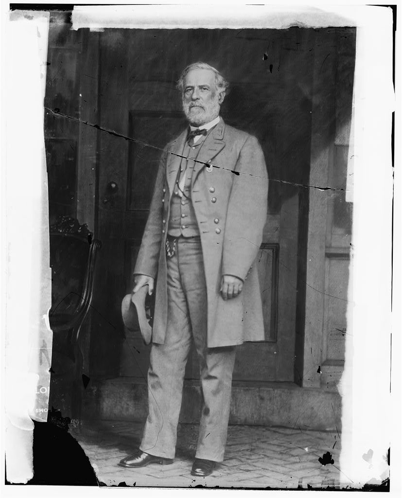 I think I must write you a letter, though it may get to you not much before the winter, to tell of the end of our campaign. Monday April 10 is a day worthy of description, because I saw the remains of our great opponent, the Army of Northern Virginia. The General proposed to ride through the Rebel lines to General Grant, who was at Appomattox Court House; and he took George and myself as aides; a great chance! for the rest were not allowed to go, no communication being permitted between the armies. At 10.30 we rode off, and, passing along the stage road, soon got to the picket line, where a row of our men were talking comfortably with an opposite row of theirs. There the General sent me ahead to see some general of theirs who might give us a guide through the lines. I rode a little beyond a wood, and came on several regiments, camped there. The arms were neatly stacked and the well-known battle-flags were planted by the arms. The men, looking tired and indifferent, were grouped here and there. I judged they had nothing to eat, for there was no cooking going on. A mounted officer was shown me as General Field, and to him I applied. He looked something like Captain Sleeper, but was extremely moody, though he at once said he would ride back himself to General Meade, by whom he was courteously received, which caused him to thaw out considerably. We rode about a mile and then turned off to General Lee’s Headquarters, which consisted in one fly with a camp-fire in front. I believe he had lost most of his baggage in some of the trains, though his establishment is at all times modest. He had ridden out, but, as we turned down the road again, we met him coming up, with three or four Staff officers. As he rode up General Meade took off his cap and said: “Good-morning, General.” Lee, however, did not recognize him, and, when he found who it was, said: “But what are you doing with all that grey in your beard?” To which Meade promptly replied: “You have to answer for most of it!” Lee is, as all agree, a stately-looking man; tall, erect and strongly built, with a full chest. His hair and closely trimmed beard, though thick, are now nearly white. He has a large and well-shaped head, with a brown, clear eye, of unusual depth. His face is sunburnt and rather florid. In manner he is exceedingly grave and dignified—this, I believe, he always has; but there was evidently added an extreme depression, which gave him the air of a man who kept up his pride to the last, but who was entirely overwhelmed. From his speech I judge he was inclined to wander in his thoughts. You would not have recognized a Confederate officer from his dress, which was a blue military overcoat, a high grey hat, and well-brushed riding boots.