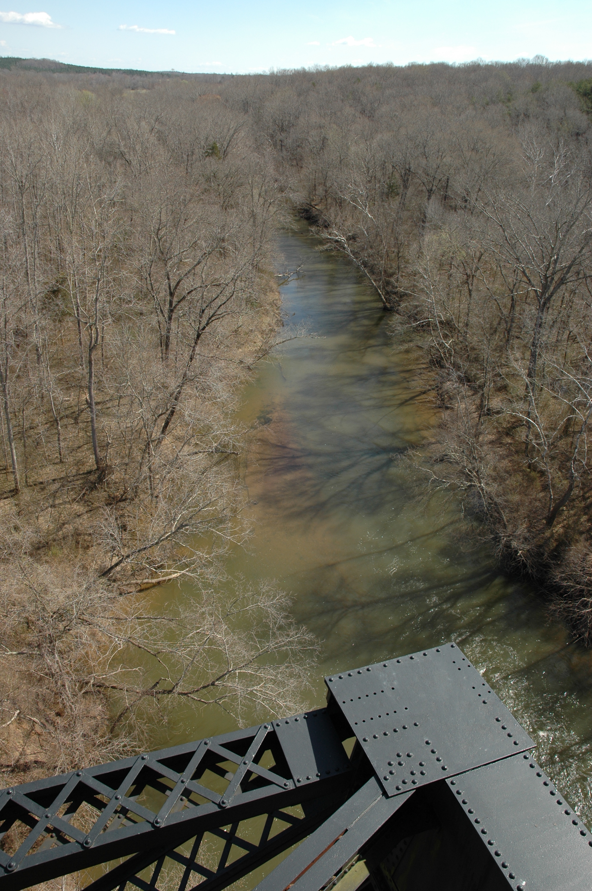 Well, it was a great experience. I wasn’t able to arrive until Friday, April 3 (meaning I missed the pre-dawn walk to the breakthrough point on April 2, 150 years ago exactly after the attack occurred), and the bus tour to Sailor’s Creek, but I did tag along for the April 4 tour. It was a long and eventful day, starting with a drive to the High Bridge outside Farmville, the site of fighting on April 7. The Confederates had used the breathtaking railroad bridge (2,400 feet long) to cross the Appomattox River, and then tried to burn the span behind them. They only partially succeeded, and Union troops were able to seize the wagon bridge that ran below the train tracks and continue their pursuit. Today the current bridge is part of a rail trail administered by the Virginia State Park system. The bridge reopened a few years ago as a pedestrian walkway (it was still being worked on when I visited while working on the book, so I had not been able to see it). You can now hike across the bridge and peer down at the brick pilings from the original Civil War structure. People with a fear of heights might think twice about making the crossing. In fact, one woman in our group asked me to walk directly in front of her so she should stare at my back and ignore the precipitous drops on either side of the bridge.